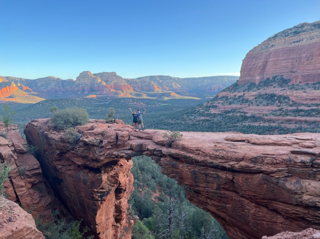 The next day we got up very early to hike to Devil’s Bridge for sunrise. We were on the trail by 5:15am. This trail gets extremely busy so if you want to see it with less people I’d recommend going for sunrise. We hiked in on an off road vehicle road. The views from the road weren’t special but once we arrived to Devil’s Bridge the views were incredible and well worth the early morning wake up.