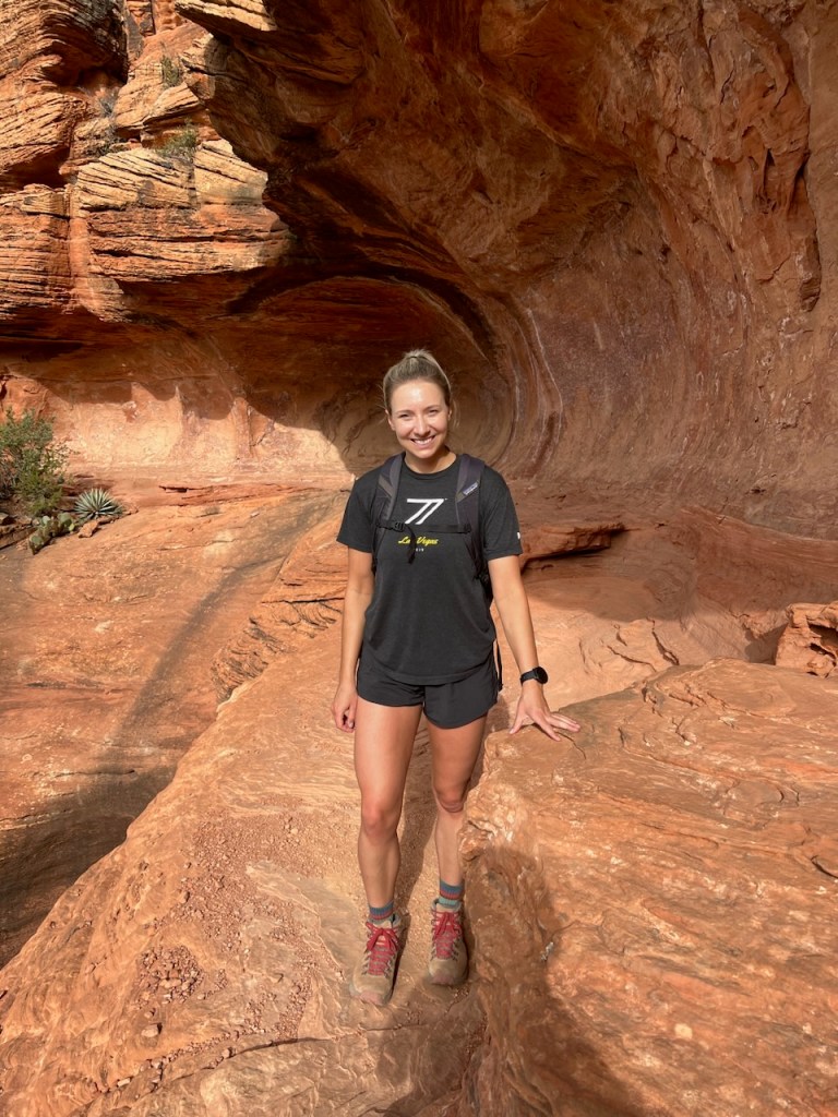After Devil’s Bridge we went straight to the Birthing Cave for a short final hike as we needed to head back to our hotel, pack up and continue our drive to the Grand Canyon. The Birthing Cave is another hike I’d recommend hitting early due to how busy it gets. The walls of the cave are a bit slippery when you climb in but it is a very cool area to check out and I would definitely recommend seeing it while you’re there!