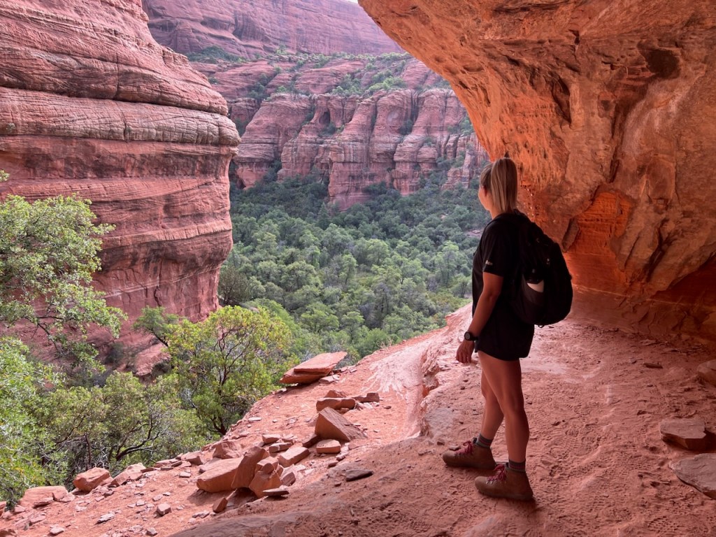 We drove from Phoenix and arrived around 7:30am on our first day in Sedona. The high temperature for the day was 95 degrees and we wanted to get as much hiking in as we could before it got too hot so we headed straight to the Boynton Canyon trailhead to hike Boynton Canyon & Subway Cave. To park at most trailheads in Sedona a Red Rock Pass is required which is $5 for the day unless you have an America the Beautiful Pass (National Park Pass). If you do not arrive at the Boynton Canyon trailhead early you may not be able to find a parking spot which would add milage to this hike having to park elsewhere. The Subway Cave is a detour off Boynton Canyon trail. It’s easy to miss so I’d recommend looking at a map to make sure you don’t hike past the junction as it is not marked and is not overly obvious. This was the perfect place for us to start and do a bit of a longer hike boasting incredible views right in the morning. It was also a great intro to the beauty of Sedona and I couldn’t help smiling ear to ear the whole journey through the beautiful red rock.