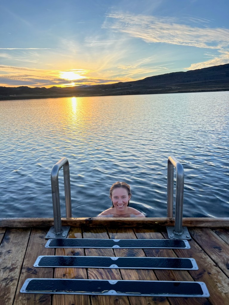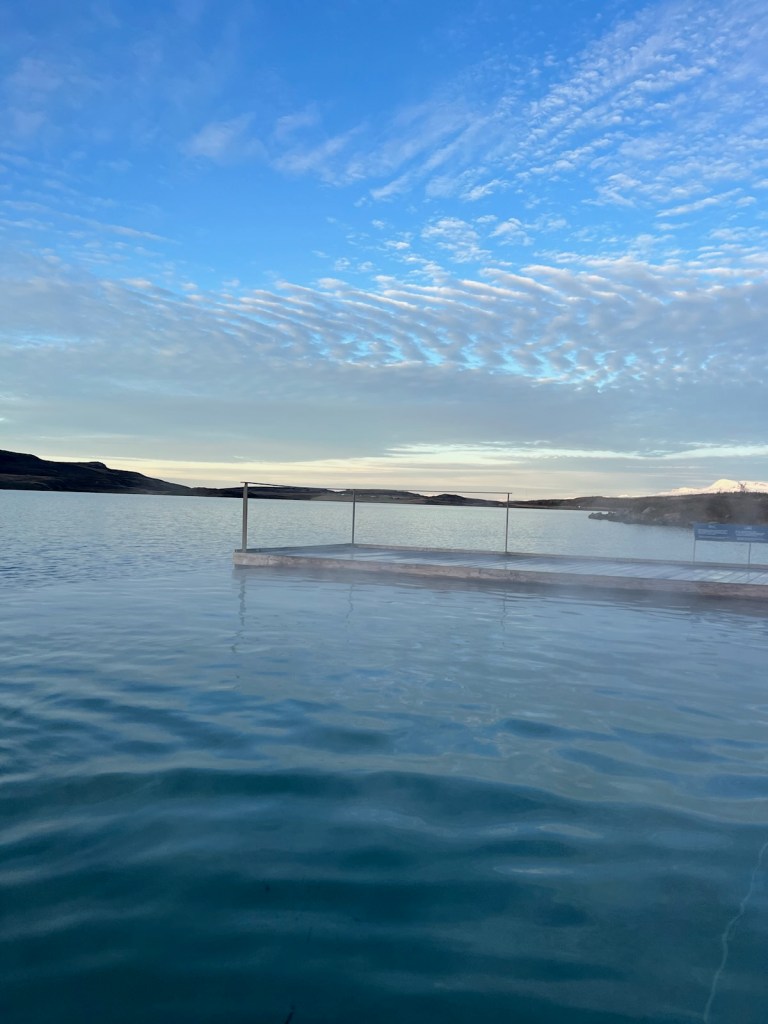 Vök Baths was by far my favorite hot spring I visited in Iceland and it was also the first one I went to so it set the bar high. It is located on the north eastern side of Iceland so if you are not doing the full ring road drive, you most likely will not pass it. Vok Baths has a series of infinity pools that sit above a natural thermal spring to capture the water and heat that comes out of the spring. The water is constantly recirculating due to the water coming up from the ground. They told us that the warm water flowing from the ground at Urriðavatn lake is so pure that it is the only geothermal water in Iceland certified as drinkable. The infinity pools sit in Urriðavatn lake which was 39F while I was there. There are ladders so you can climb into the lake if you want to. I switched between the cold lake water and the hot spring pools and it felt AMAZING. The sun was setting while I was there and I couldn’t have asked for a more beautiful scene. They offer a steam room, cold mist tunnel, hot showers as well as food and beverage. Writing about this makes me want to move to this area so I can get a membership at Vok Baths! I saw locals freely swimming in the cold lake water while I stayed attached to the ladder for an easy exit. Maybe if I lived there, I’d build up a tolerance/toughness to swim around in that cold lake with them 🙂