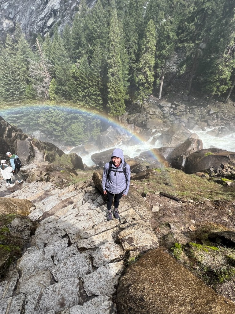 We headed back into Yosemite Valley on our third day to hike to the top of Vernal Falls via the Mist Trail (about 4.5 miles, 1,300 ft. gain to the top of Vernal Falls). The Mist Trail had just opened 3 days prior after being closed for the winter. If you continue up past Vernal Falls you can also hit Nevada falls which I hear is very much worth it! Due to the massive amounts of runoff from snow melt and rain, the waterfalls were huge and we got SOAKED hiking up the Mist Trail. It was such a fun and rewarding hike and I definitely recommend hiking it and hiking it early as this is a very popular one. This trail is also the start of the hike to Half Dome. Half Dome was not open yet (the cables are not usually installed until the end of May) but next time I’m back, I hope to pull a permit to hike that 🙂