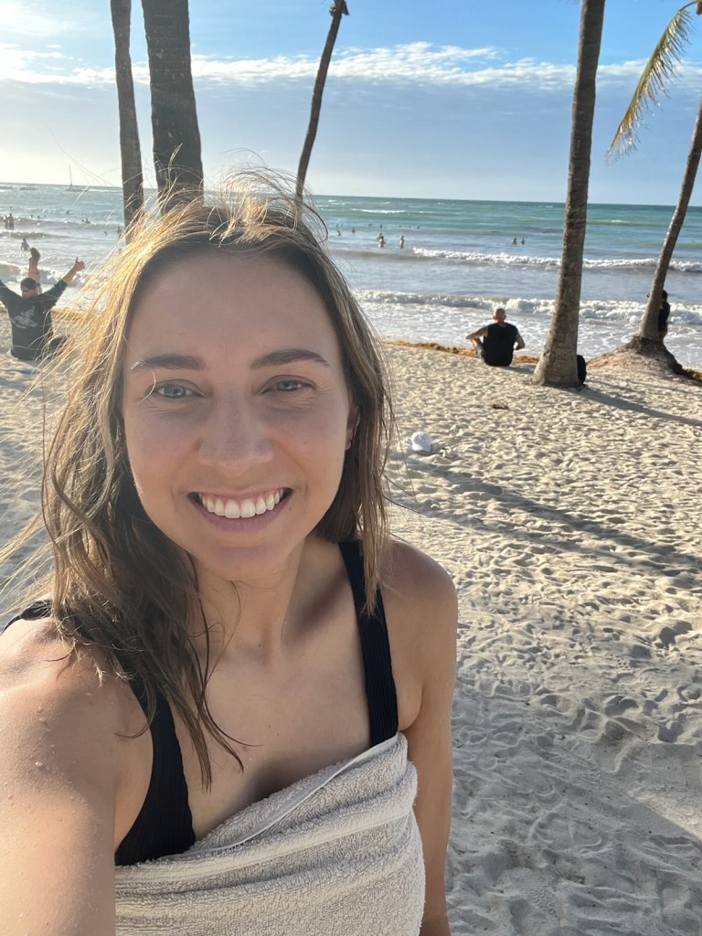 Since you spend a lot of time in the convention center attending keynotes by Dr. Joe and meditating, I recommend dressing in layers as it can get chilly with the AC. I mostly stuck to comfy clothes throughout the week. Some people brought nicer clothes for dinner but most went straight to dinner in their comfy clothes after we got out around 8/8:30pm. How fancy you want to dress is up to you but I definitely recommend making sure whatever you wear is comfortable! Most people bring something to lay down on whether that’s a blanket, yoga mat or blow up camping pad for the lay down portions of the meditations. I brought a blanket that I carried with me in my backpack and I used an extra sweatshirt as my pillow for the laying down portions. I brought coverups for the beach walking meditations at sunrise so I could jump in the ocean right after. Lastly, I brought a journal to take notes and journal throughout the week.
