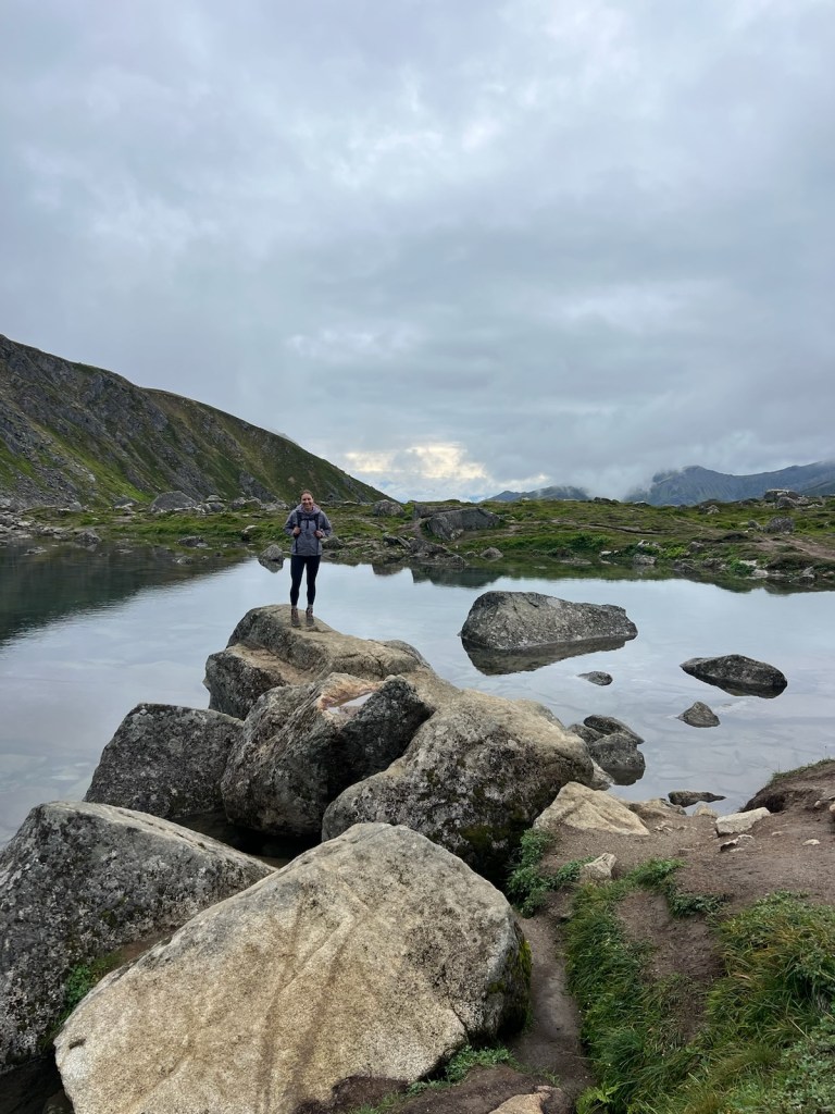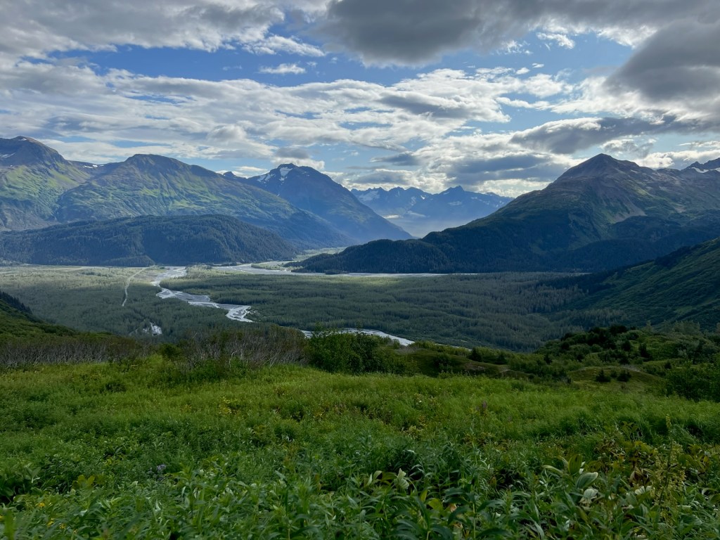 I typically base camp out of Palmer, a city about an hour northeast of Anchorage, which is where my uncle lives. Palmer is home to Hatcher’s Pass which is an incredible area for hiking so I make these mountains my first stop. My favorite trails in Hatcher’s Pass are April Bowl (2.2 miles, 850 ft gain), Reed Lakes (8.7 miles, 2250 ft. gain), Marmot Mountain (2.6 miles, 1950 ft. gain), Skyscraper Mountain (1.9 miles, 2000 ft. gain) and Gold Cord Lake aka Uncle Dale’s Favorite trail! (1.5 miles, 472 ft. gain). Hatcher’s Pass has some of the best hiking in Alaska and you typically don’t have to worry about seeing bears as there’s not a ton of brush. I’ve never seen one in that area but I still carry my bear spray to be safe. This is also an area where I feel very safe solo hiking.