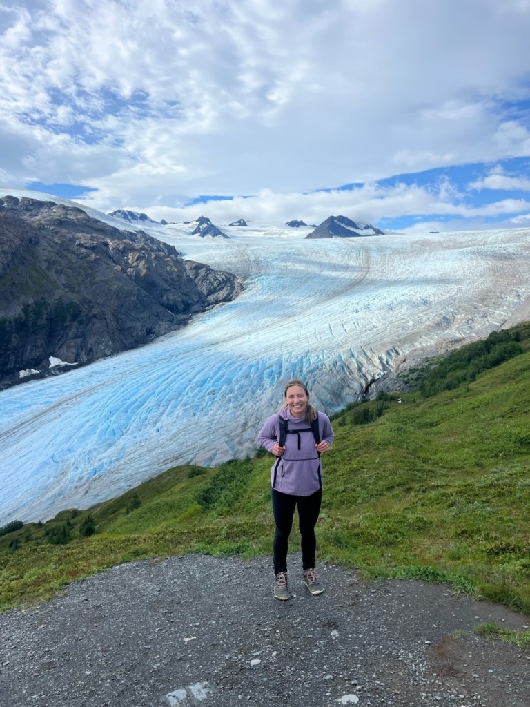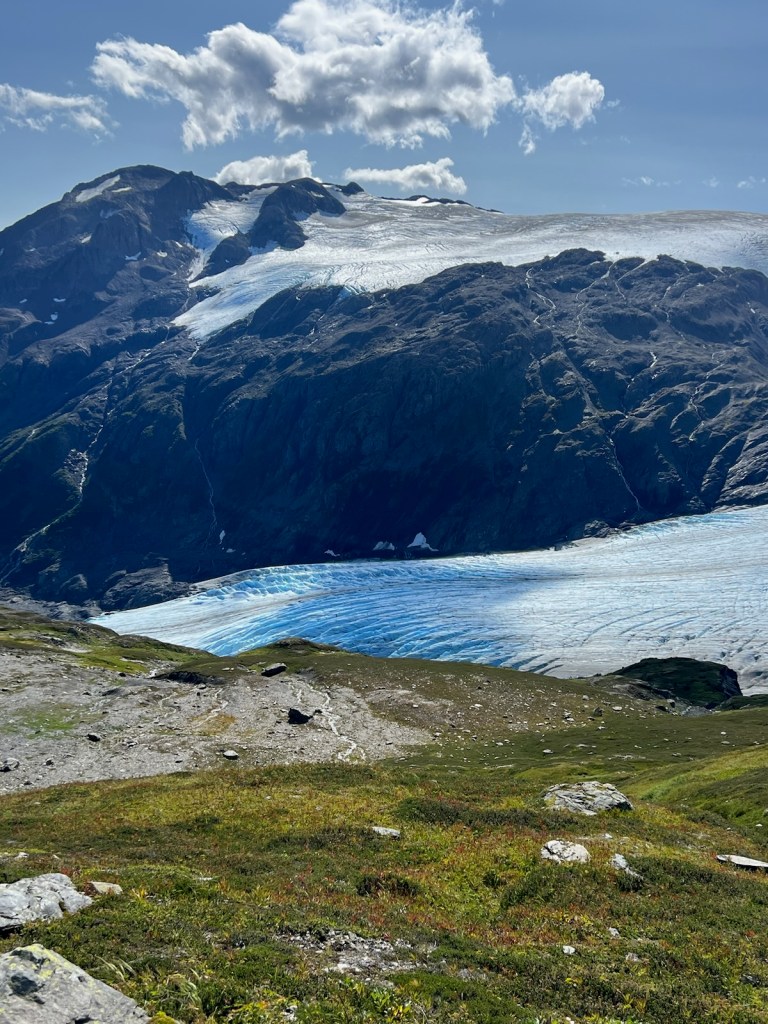 For the last couple of years, I have been wanting to hike up to Harding Icefield (9 miles, 3200 ft gain) located in Kenai Fjords National Park. There is a mama bear and cubs that hang around this trail and with the many miles of trees and brush you hike through I was always nervous to do this by myself. I finally got the courage to do it during this past trip. It was an incredible hike and there were enough people on the trail that made me less nervous about bears. I did see the mama bear and her two cubs from a safe distance and it was the cherry on top of a beautiful day. If you have time and energy this trail is an absolute must do! I think in total the hike ended up being closer to 9.5 miles and 3600 ft. gain according to my watch. I did continue on a bit past where the trail ended to get closer to the icefield.