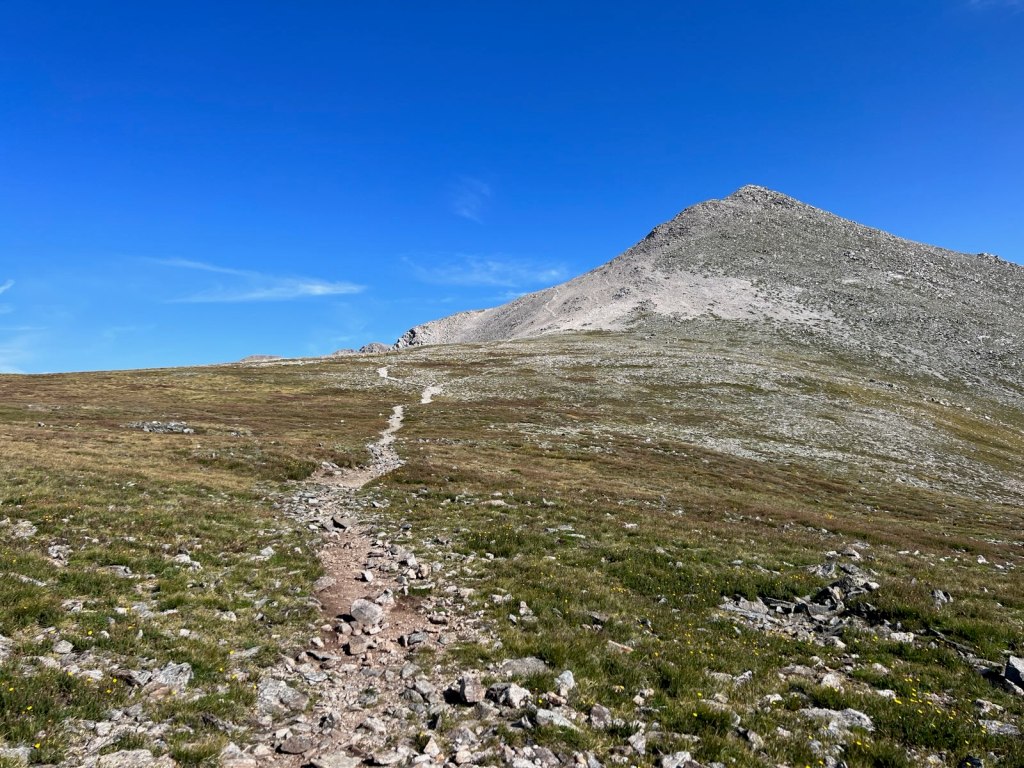 When you reach the top of the first ridge, you will follow the trail to the right to continue to the summit of Mt. Shavano. The views are beautiful of the mountains that appear on the backside of Shavano. Typically when you get to ridges, you are no longer protected by the mountain so it can get quite windy. Luckily, there was no wind which made the hike very pleasant. This is not often the case with 14ers so I was very grateful. As I continued up Mt. Shavano, there were a couple points where I felt like the summit was near while I was navigating the rocks and boulders towards the top. I wouldn’t say there were false summits but maybe some false hope that I was closer to the summit than I was. After 3.5 hours of hiking, I made it to the top and summited in beautiful weather with sunshine and no wind. The views were spectacular all around. I sat on a rock and enjoyed my pb&j and feeling of accomplishment.