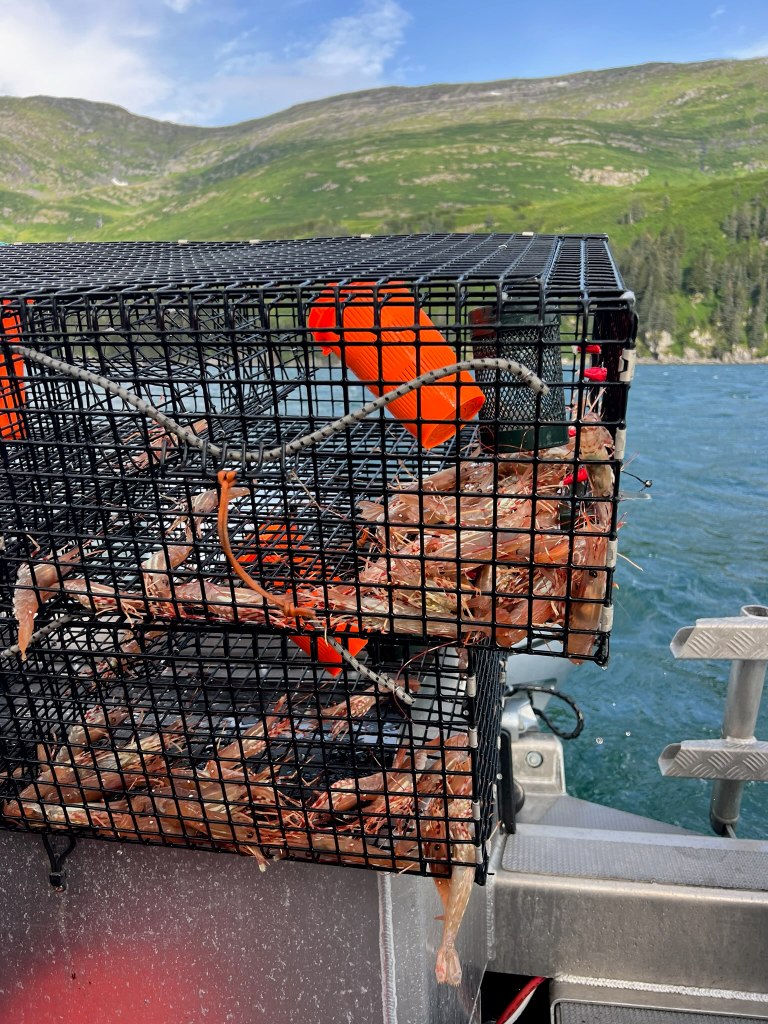 Instead of fishing this trip, I went ocean shrimping. I had never been so my uncle, cousin and I set out to Whittier, Alaska to put my cousin’s new ocean boat in the water and pull up some shrimp traps. The shrimp live 400-500 ft. deep in the ocean at the base of glaciers. The glacial water runoff makes for extremely cold waters and as a result, the shrimp are big, fatty and sweet. I had so much fun pulling shrimp traps and almost getting tricked into eating a raw shrimp on the boat. We shrimped in Prince William Sound which is home to diverse marine life, mammals, fjords, islands, rugged mountains, and about 150 glaciers. If it is your first time to Alaska, I recommend chartering a halibut fishing trip as I’m not sure shrimp charters are available.