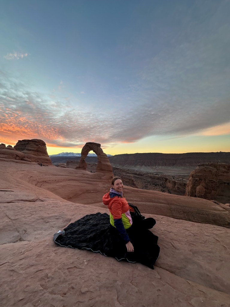 Tower Arch Trail sits within Arches National Park but is not very popular as it’s off the main paved road and down a long dirt road. My friend and I were the only ones on this trail when we went in January. When you’re the only one on a trail in Utah, you can easily imagine you’re the only people left on planet earth which is a little eery and oddly exciting to think about. This trail was easy (for us) to lose as we mistakingly thought dry sandy creek beds were the trail. After getting lost more than once and adding an extra mile to our trip, we made it to the arch. It was gorgeous. Pay close attention to the rock cairns and the AllTrails map if you do this one!